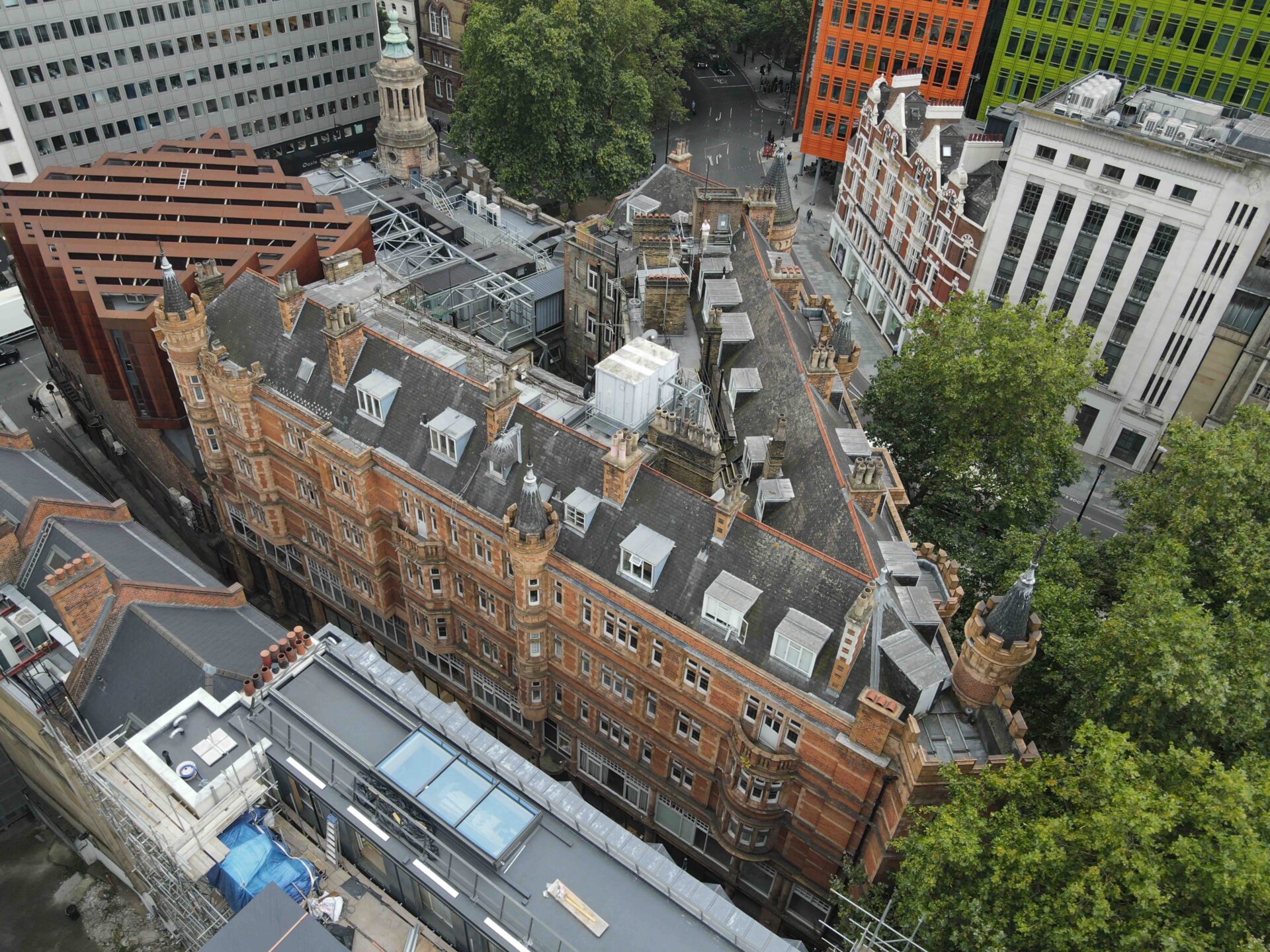 When choosing a drone survey company London clients often ask about our building inspection capabilities. Our advanced drone technology enables comprehensive surveys with unprecedented detail and safety. High-resolution cameras mounted on our drones capture minute details of building facades, roofs, and structural elements that would be challenging or dangerous to inspect manually. This technology proves particularly valuable in London's historic buildings, where accessing high or intricate architectural features traditionally required expensive scaffolding or cherry pickers.